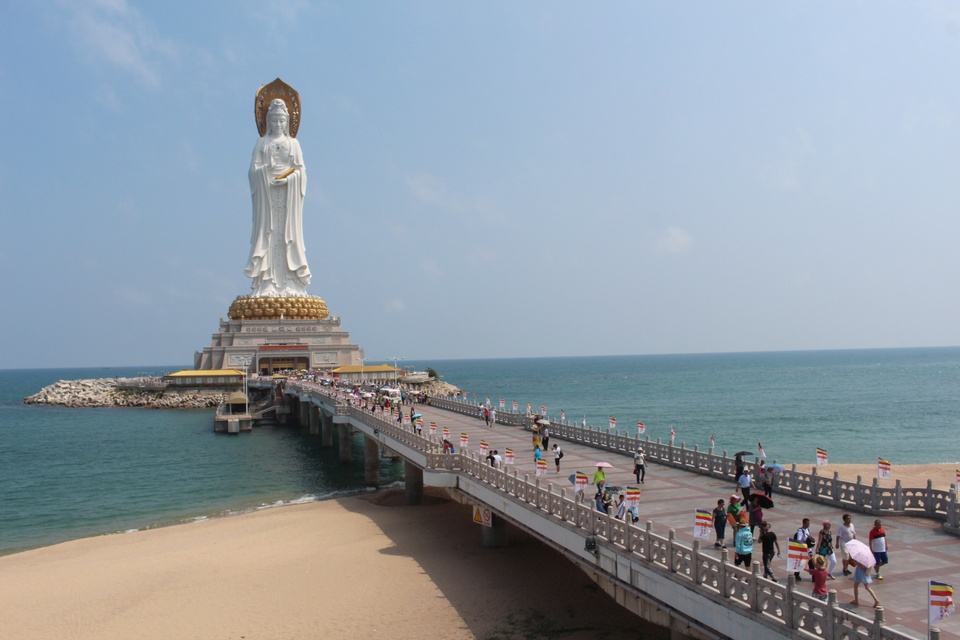 Thu hút nhất là bức tượng Nam Sơn Hải thượng Quán Âm cao 108 m, đứng trên tòa sen 108 cánh với 3 mặt nhìn ra 3 hướng, tượng trưng cho lòng từ bi, bình an và trí tuệ. Tượng được đặt trên một hòn đảo nhân tạo ngoài biển, nối đất liền bởi chiếc cầu dài 280 m. Đây là một trong những bức tượng cao nhất thế giới.